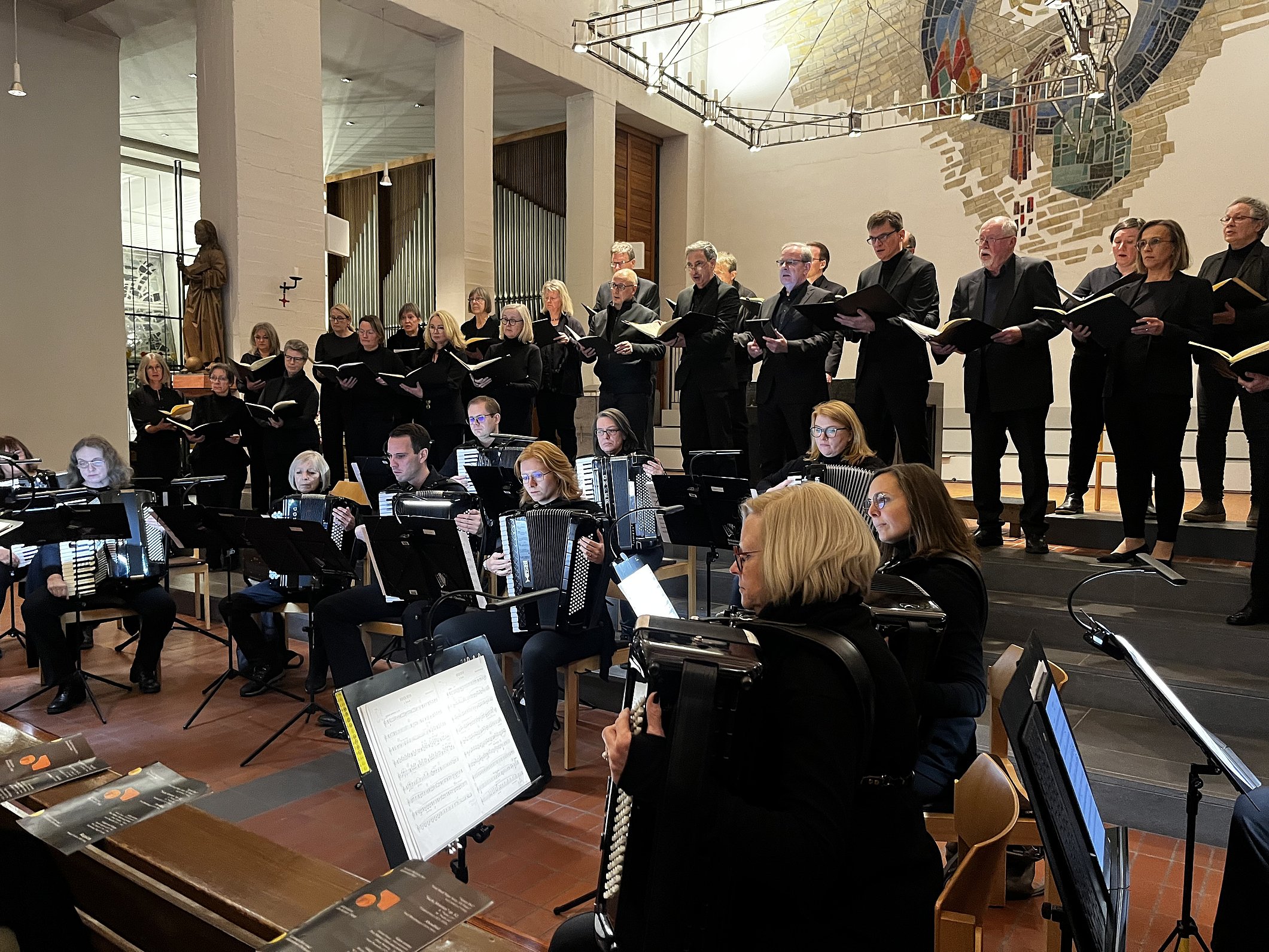 Erleben konnte dies ein großes niederrheinisches Publikum am 23. November in St. Martini Wesel. Denn dort wurde im Rahmen eines Konzerts der Staffelstab des Instruments des Jahres von der Stimme an das Akkordeon übergeben. Was das musikalisch bedeutet, zeigten der Niederrheinische Kammerchor unter Leitung von Peter Winking und das Akkordeon Orchester 1980 Dinslaken/Oberhausen unter Leitung von Johannes Burgard. Mit Werken wie dem „Agnus Dei“ von Karl Jenkins und dem „Abendlied“ von Josef Rheinberger lotete der Kammerchor alle Nuancen der menschlichen Stimme aus.
