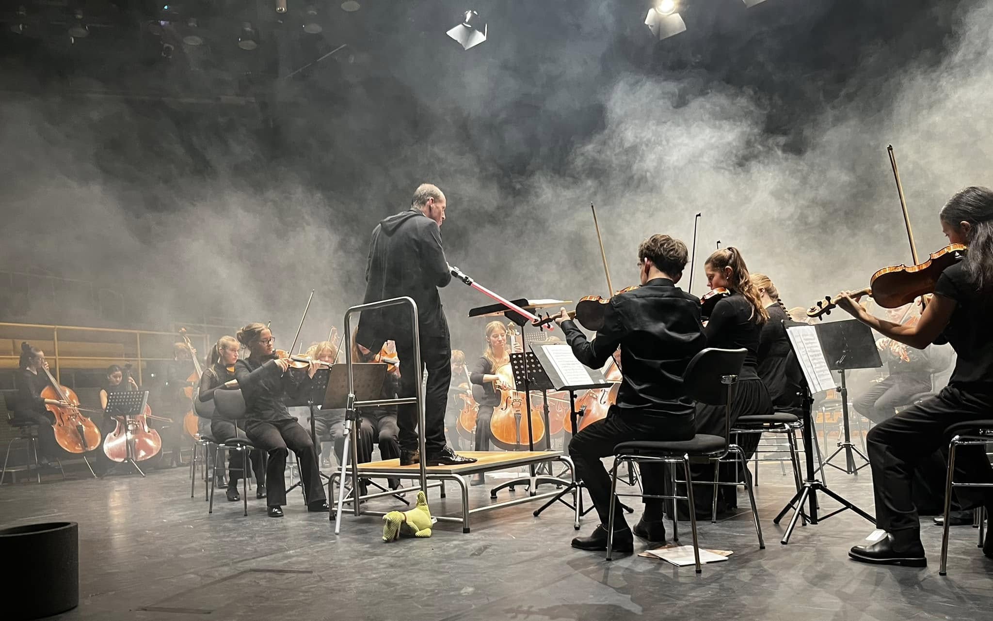 Das Kinderorchester NRW eröffnete den musikalischen Reigen mit einem farbenreichen Programm, das von märchenhaften Ballettklängen bis zu Filmmusik reichte. Werke von Tschaikowsky, John Williams, Paul Dukas, Antonin Dvořák und Danny Elfman führten die Zuhörenden in fantastische Klangwelten. Durch das Programm leitete Ralph Erdenberger, der nicht nur moderierte, sondern auch Zaubertricks einsetzte und mithilfe einer Nebelmaschine eine Atmosphäre zwischen Magie, Humor und pädagogischer Neugier erzeugte, während Dirigent György Mészáros zeitweise mit einem Laserschwert dirigierte.