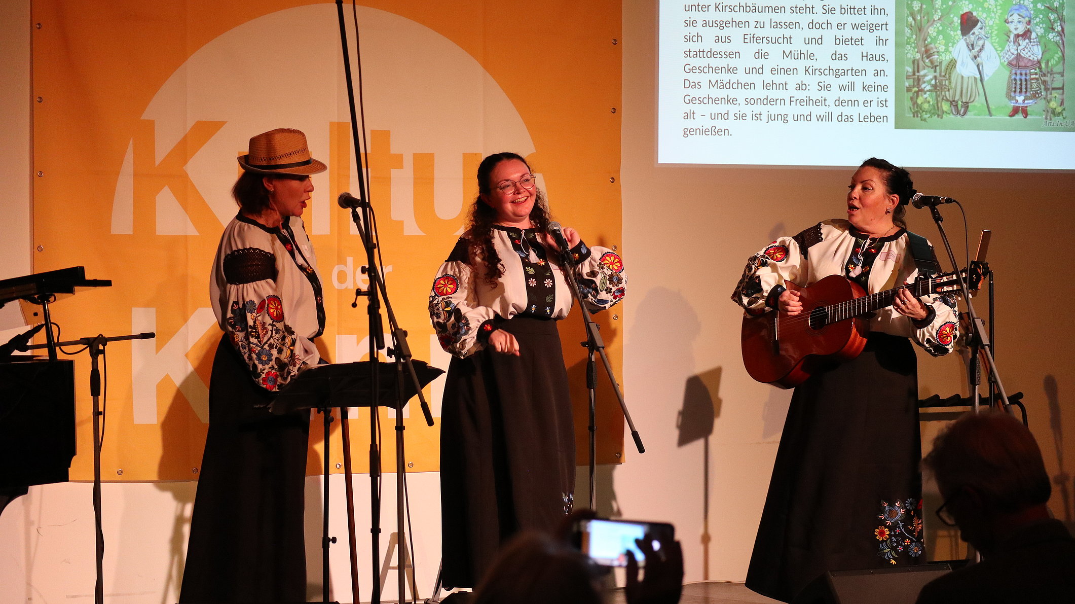 Das Trio Ukraina (Iryna Dusheiko, Yana Andrushchenko und Yulia Parnes) brachte ein Programm zwischen traditioneller und arrangierter Volksmusik, mit Werken von Volodymyr Ivasyuk, Anatoliy Kos-Anatolskiy und Mykola Leontovych. Das Publikum wurde auf eine emotionale Reise zwischen Heimatverbundenheit, Sehnsucht und Lebensfreude mitgenommen.