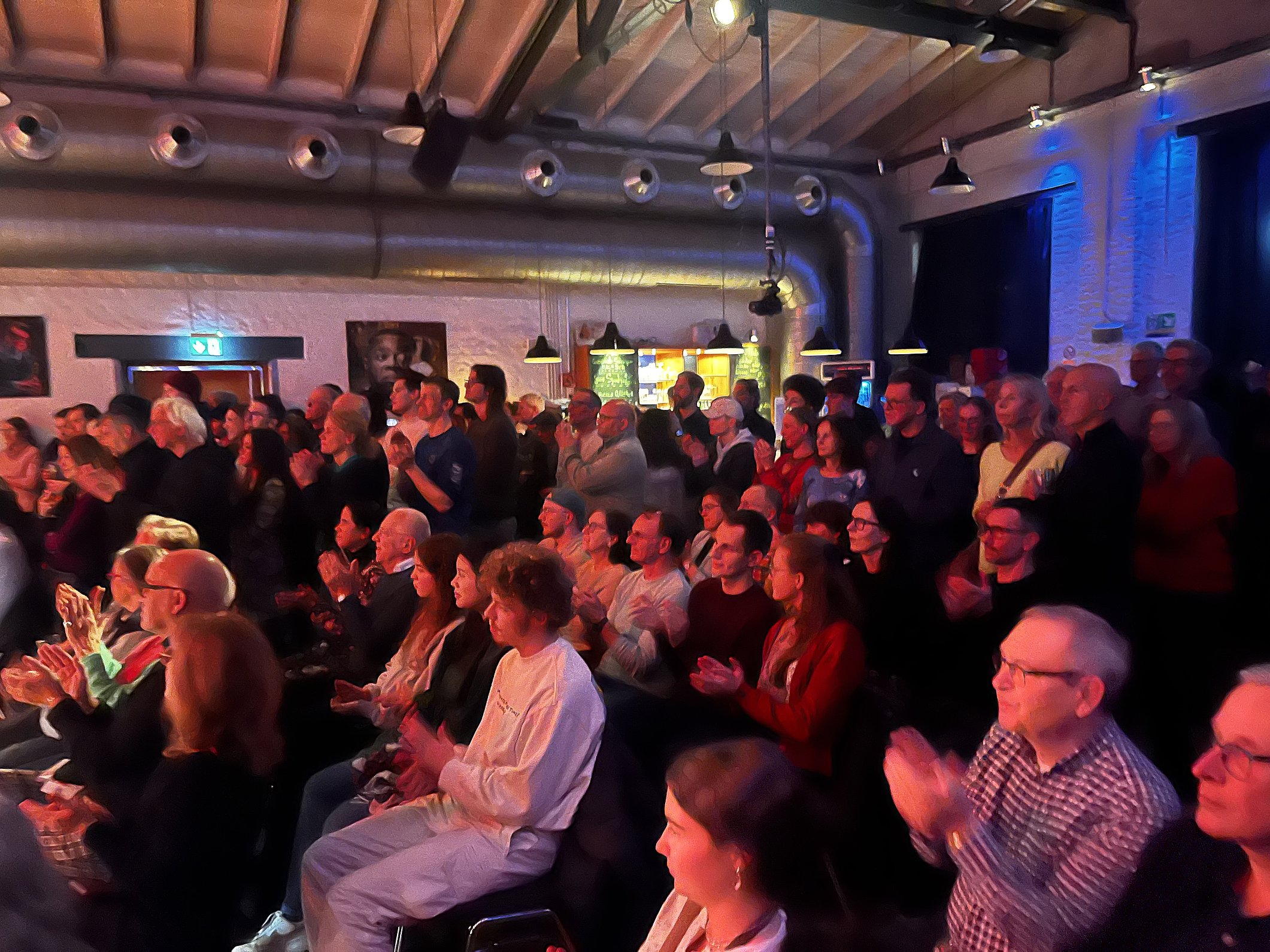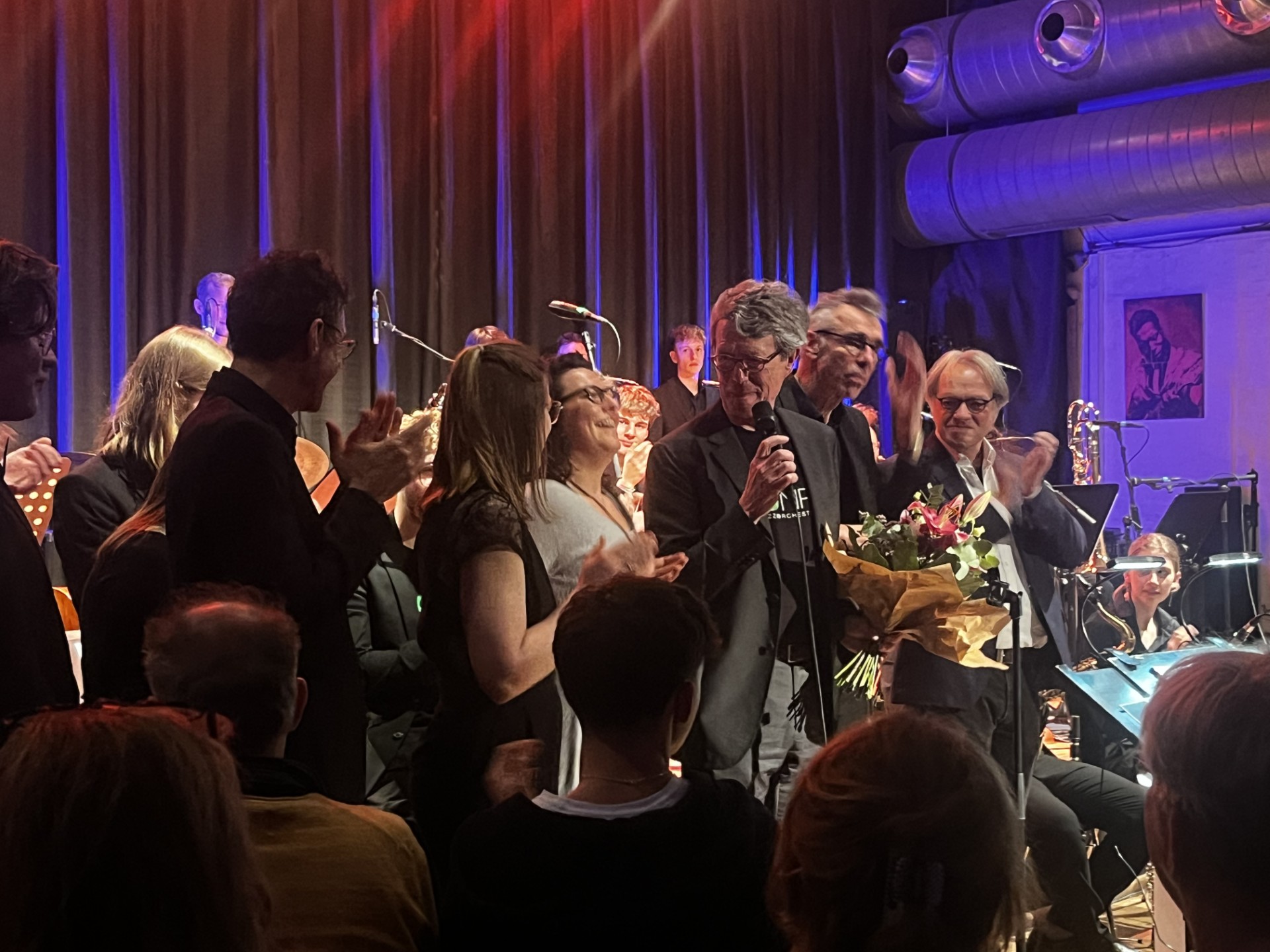 Entsprechend groß war der Andrang in der Jazzschmiede. Viele Gäste drängten sich rund um Theke und Mischpult; zahlreiche Weggefährten Haberkamps waren gekommen. Unter ihnen Dominik Seidler, der in den 1990er-Jahren selbst als junger Musiker im Jugendjazzorchester NRW begonnen hatte und später über das Bundesjazzorchester sowie den Wettbewerb Jugend jazzt eng mit Haberkamp zusammenarbeitete – und nun ebenfalls einen neuen Abschnitt beginnt. Auch Haberkamps Nachfolgerin Lena Zimmer war anwesend, ebenso Jule Hardtmann, die das Management in den vergangenen Jahren engagiert unterstützt hatte. Vollzählig erschien zudem das künstlerische Leitungsteam mit Stephan Schulze, Gabriel Pérez und Stefan Pfeifer-Galilea.