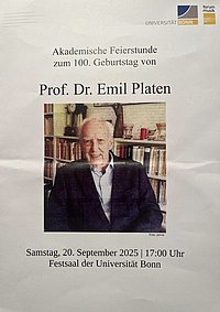 Am 20. September fand im Festsaal der Universität Bonn eine feierliche Stunde zu Ehren von Prof. Dr. Emil Platen statt, der wenige Tage zuvor seinen 100. Geburtstag begehen durfte.…