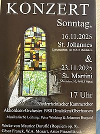 Am Sonntag, 23. November 2025, findet in der St.-Martini-Kirche in Wesel (Martinistr. 10) um 17 Uhr ein besonderes Konzert des Akkordeon-Orchesters 1980 Dinslaken/Oberhausen gemeinsam mit dem…
